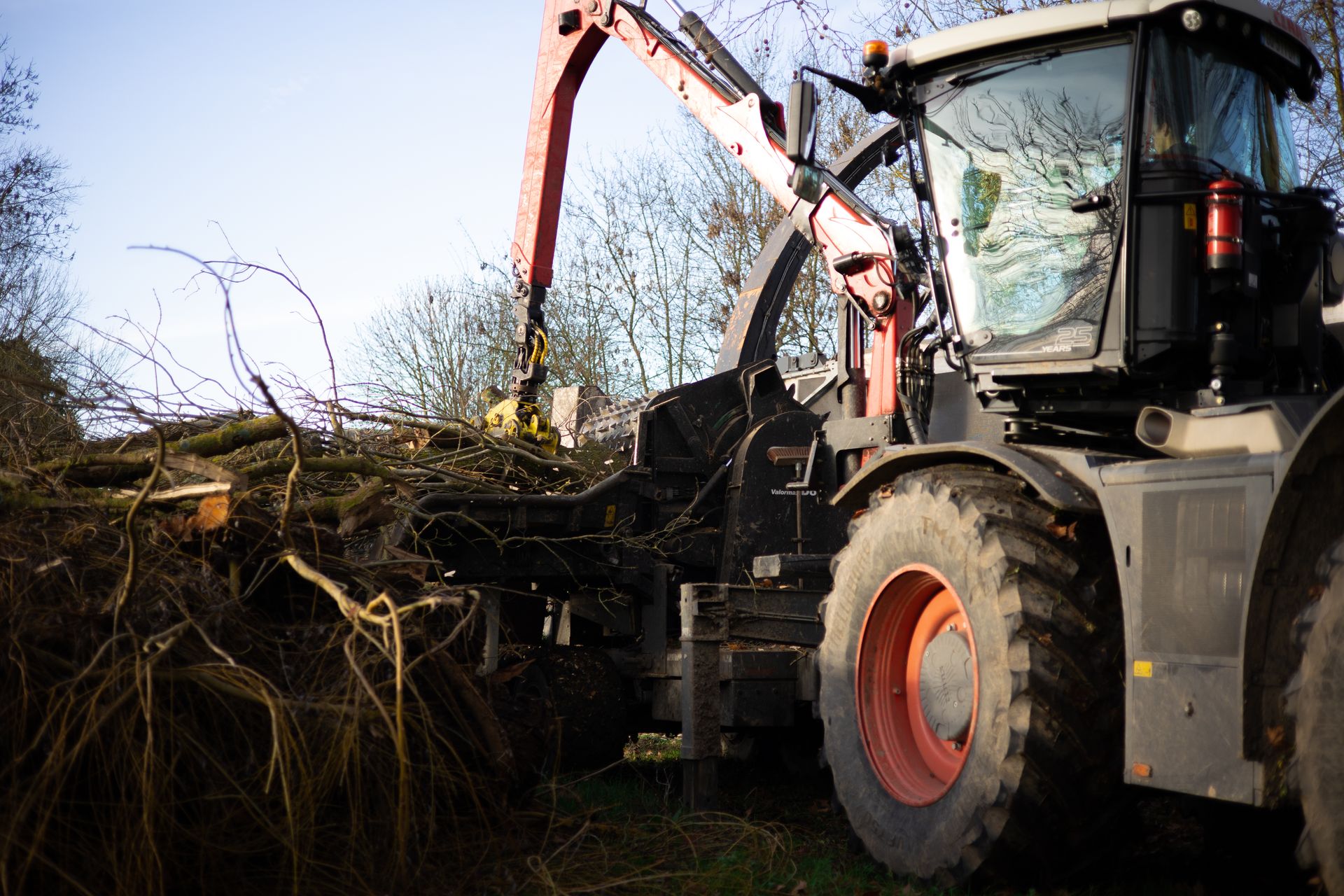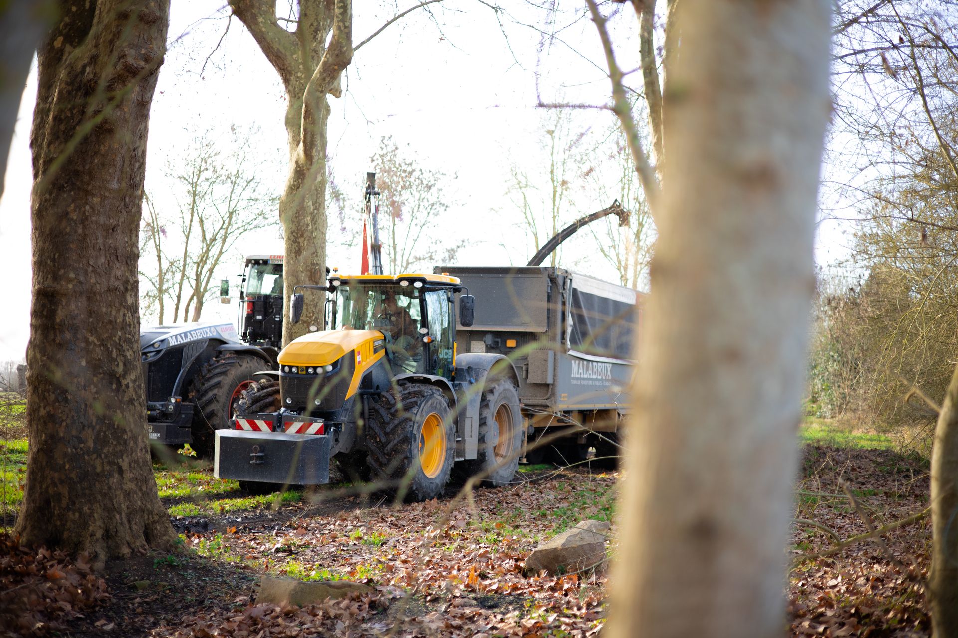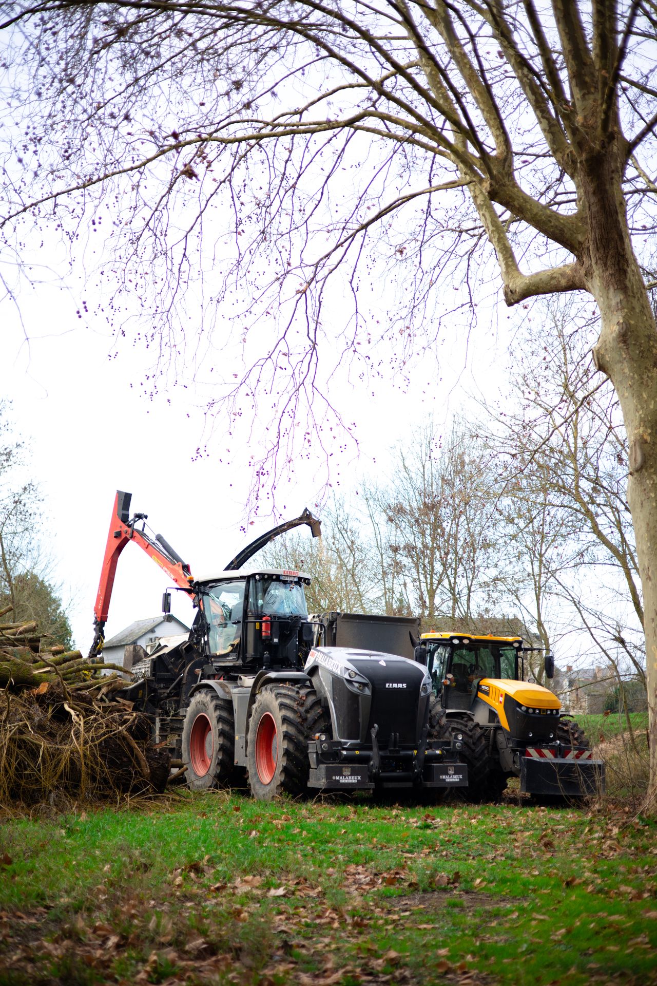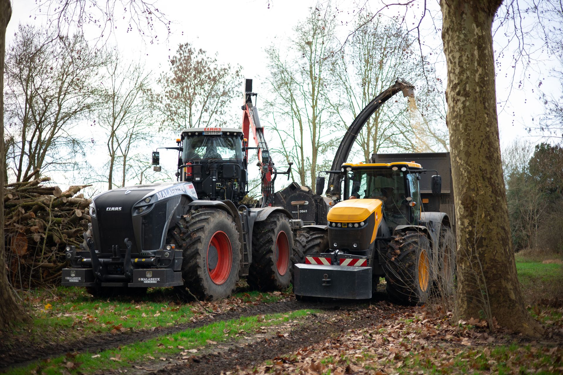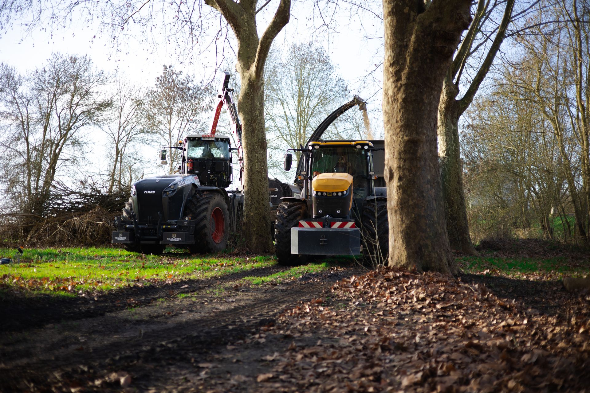 Après l'abattage et l'élagage des arbres du camping, le bois est déchiqueté et transformé en plaquette forestière. Il sera envoyé en chaufferie par la suite.