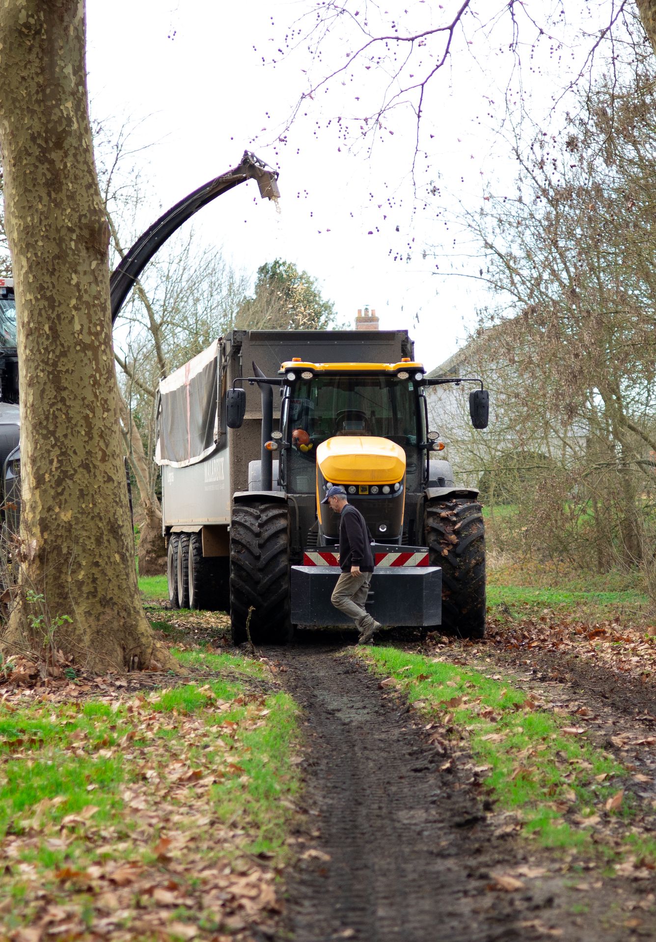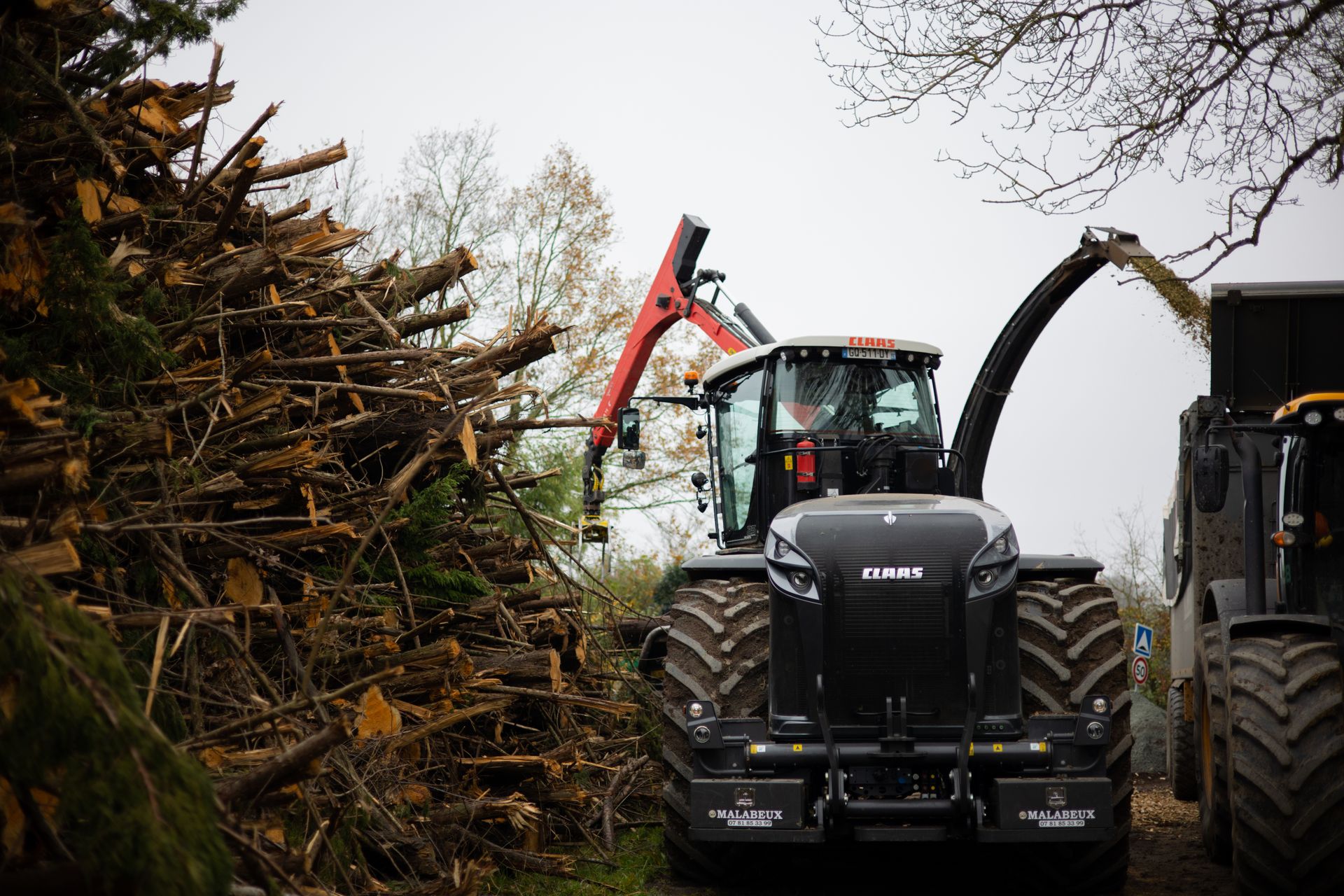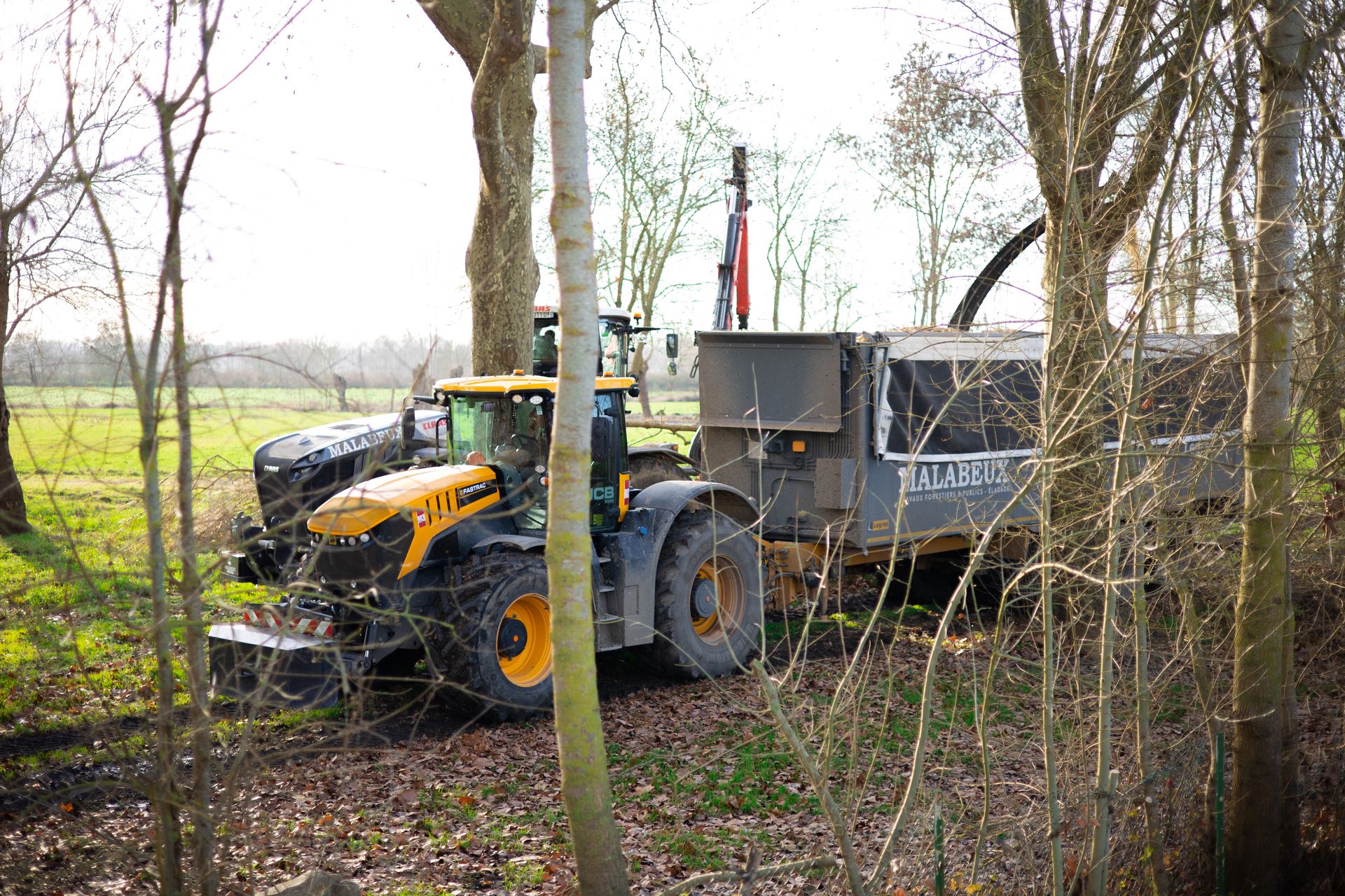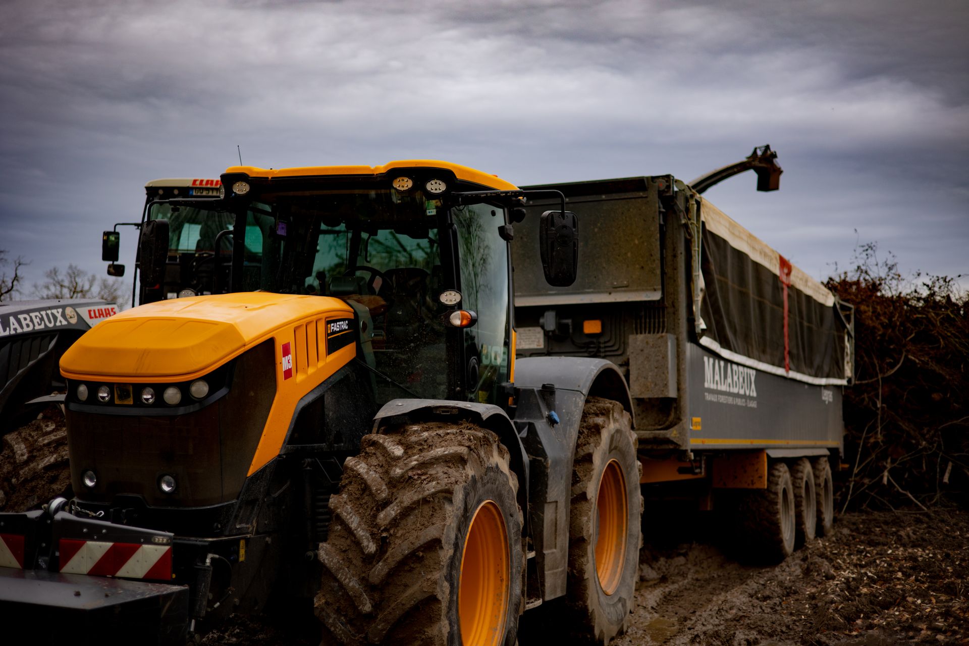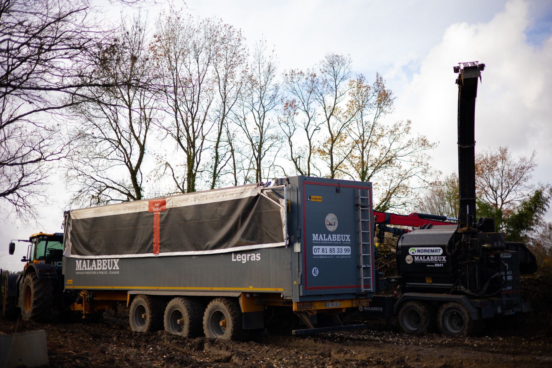 Ce matériel nous sert de transport de terre, de gravas ou de souches (tracteurs + benne) mais également de transport pour la plaquette forestière (tracteurs avec remorque fond mouvant pour livraison en chaufferie).